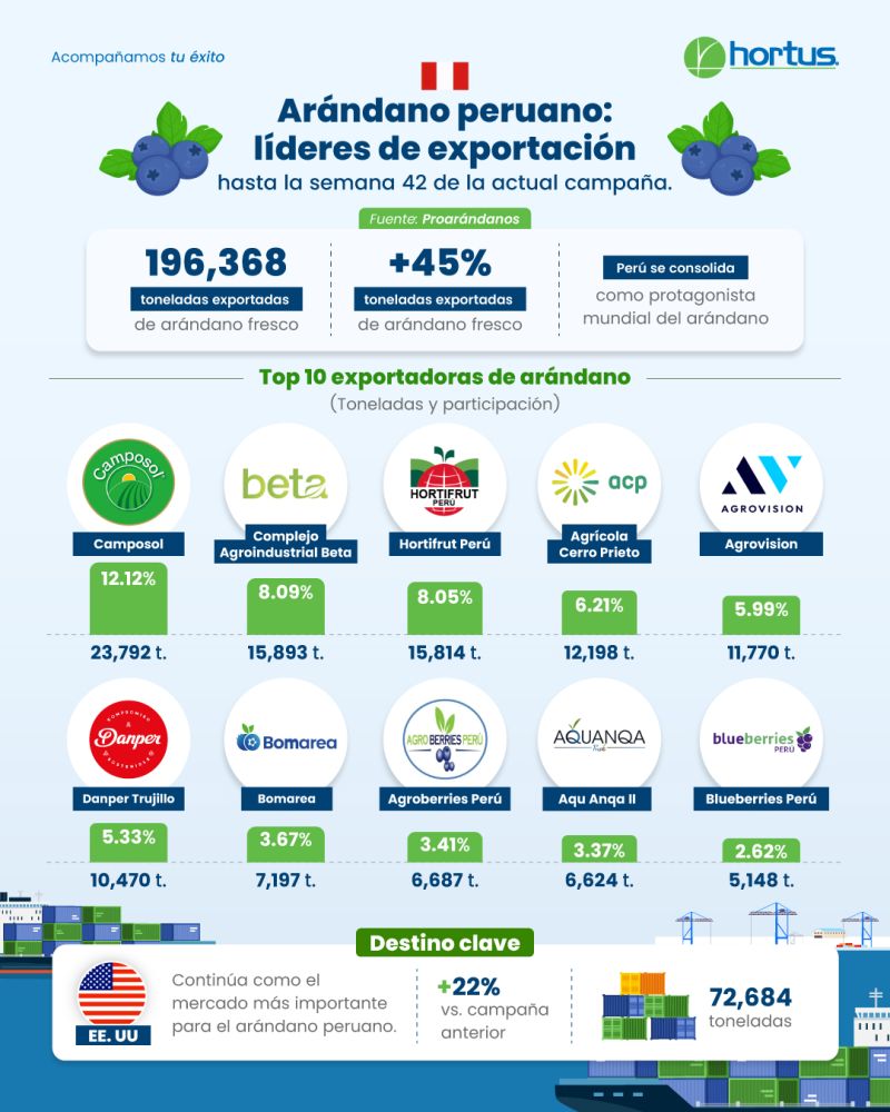 Hortifrut Perú con 15,814 toneladas (8.05%)
